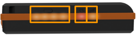 | Battery | The current charge of the tracker with 1-4 LEDs glowing solid orange. 🟧 1 LED: 0%-25% 🟧🟧 2 LEDs: 25%-50% 🟧🟧🟧 3 LEDs: 50%-75% 🟧🟧🟧🟧 4 LEDs: 75%-100% | |